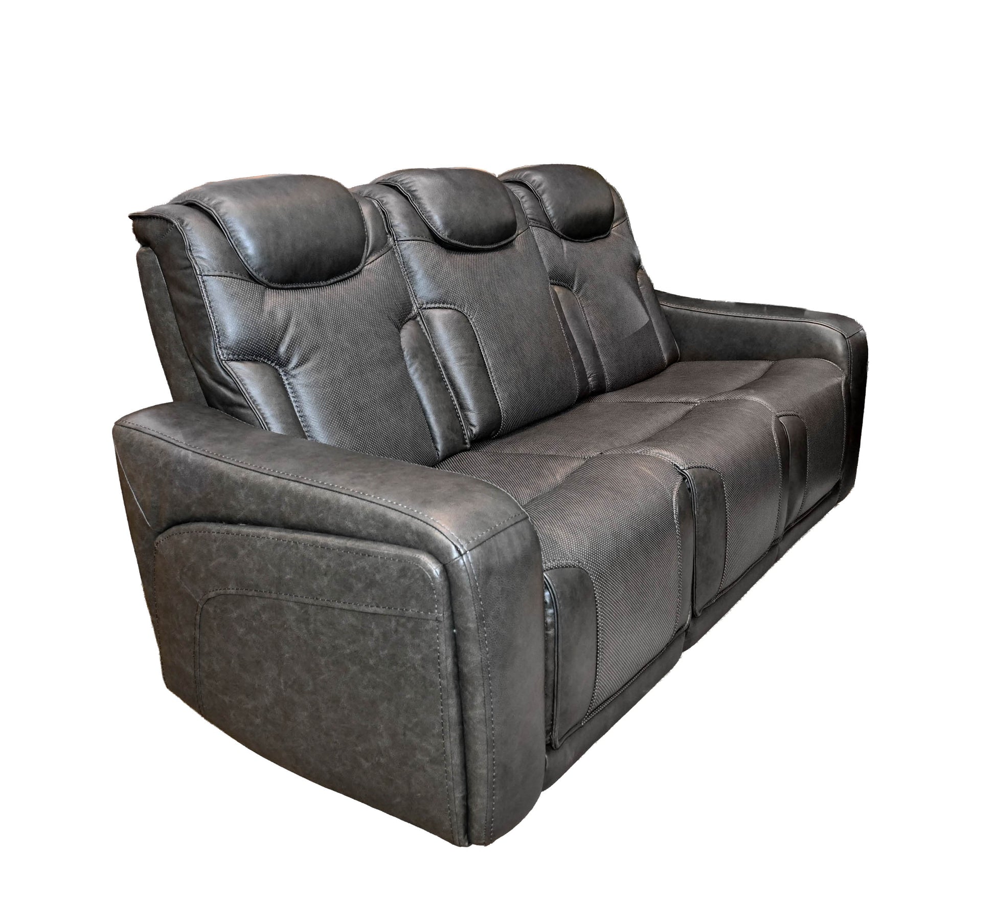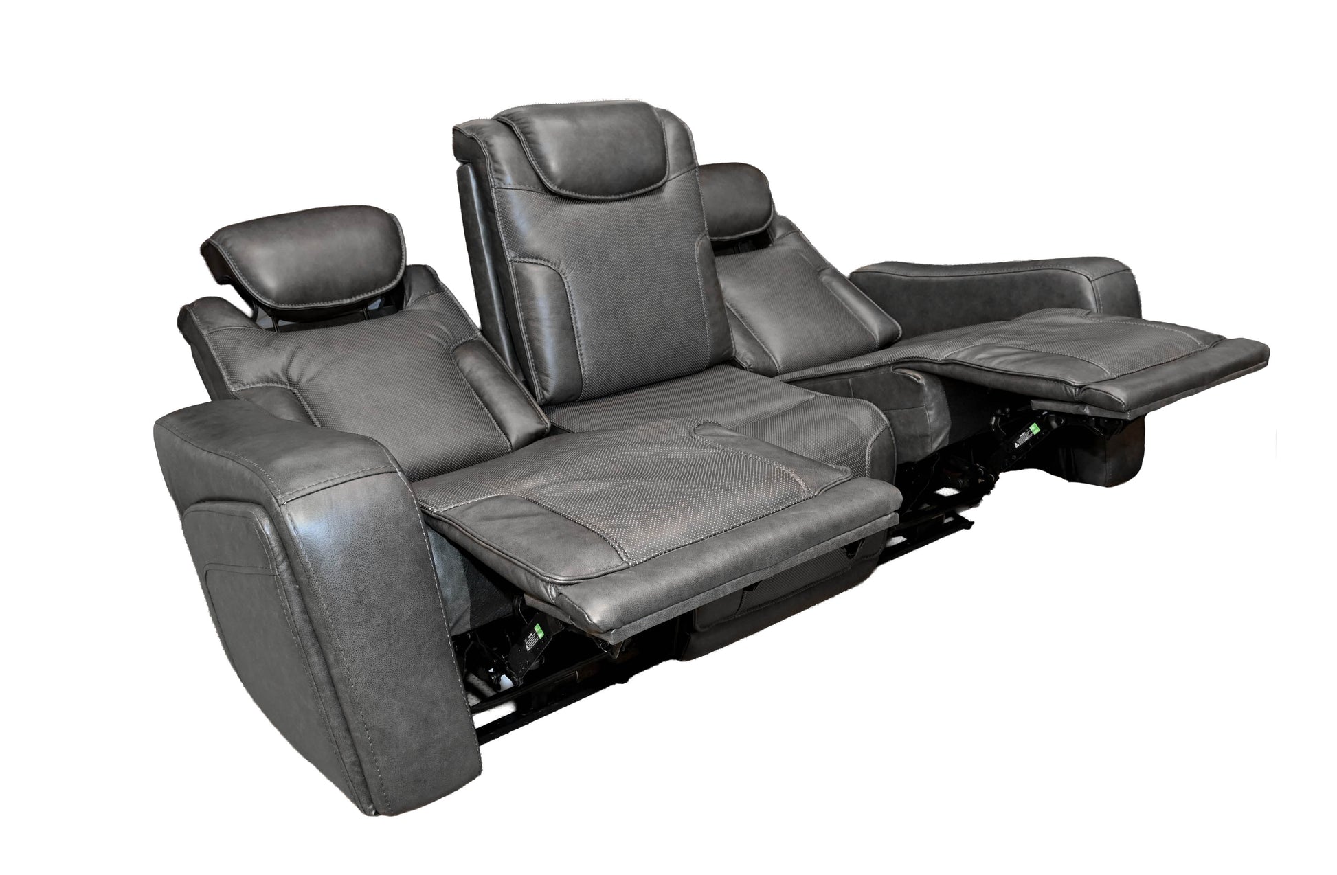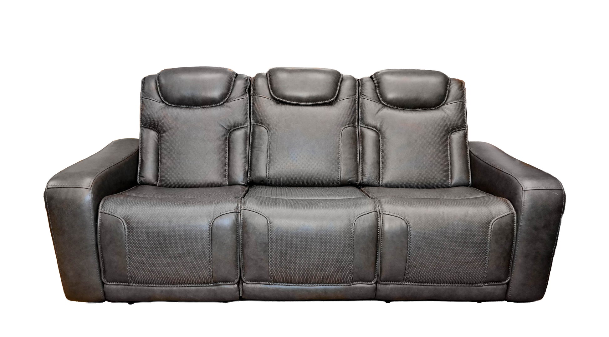 Experience ultimate relaxation with the K-Motion Jet Set Zero Gravity Sofa in Ink Black. This high tech sofa features hidden power recline buttons and zero gravity positioning for weightless comfort. The adjustable headrest adapts to your preferred angle, while premium perforated leather ensures breathability. Integrated Bluetooth speakers deliver immersive audio, and the power drop-down center console includes signature iTable cupholders, a charging port, and reading light—everything you need within arm's reach.