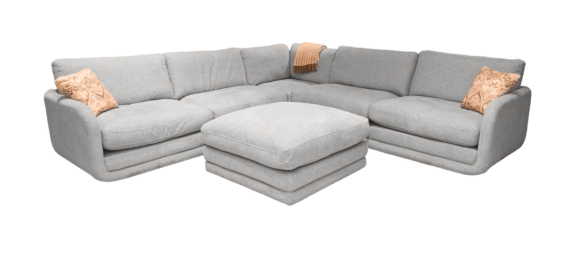The K-Motion 6 Piece Modular Sectional transforms how your family relaxes together. Each piece sits detached creating a completely customizable fit to your exact room dimensions and seating needs. Luxurious down-filled cushions provide cloud-like comfort, while independent seat and back components allow effortless rotation, repositioning and cleaning. Zippered covers make spill cleanup and maintenance simple—no more worrying about accidents. The streamlined, low-profile silhouette with padded rounded track arms creates a sophisticated modern aesthetic that doesn't sacrifice comfort. Pair this piece with the Modular Brent Sand Ottoman and lift your feet up, lay back and relax. Premium, durable fabric in multiple colorways ensures this customizable sectional complements any décor while standing up to everyday family living.