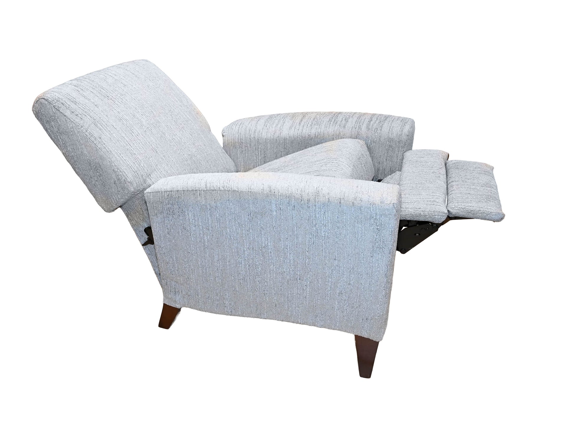 Discover effortless comfort with the La-Z-Boy Scarlett High Leg Laid-Back Reclining Chair. This designer piece features a fresh, clean silhouette with casually tapered arms and striking espresso wooden legs that elevate any living space. Simply push back to unlock two positions of instant reclining comfort, making it the perfect blend of style and relaxation. Ideal for those who appreciate contemporary design without compromising on functionality.