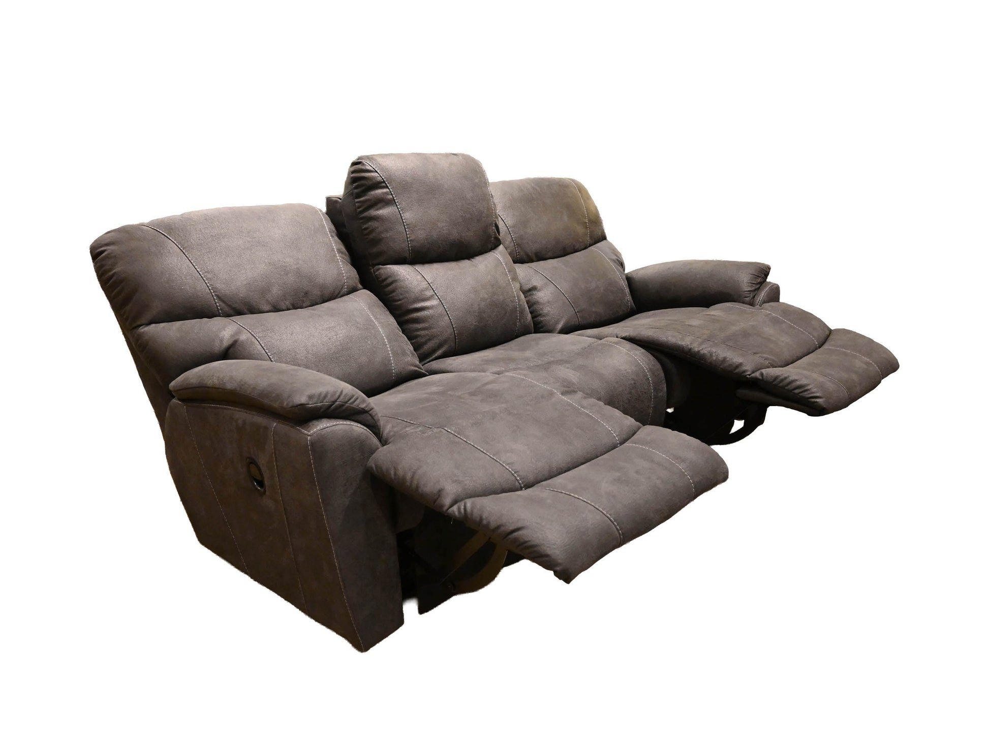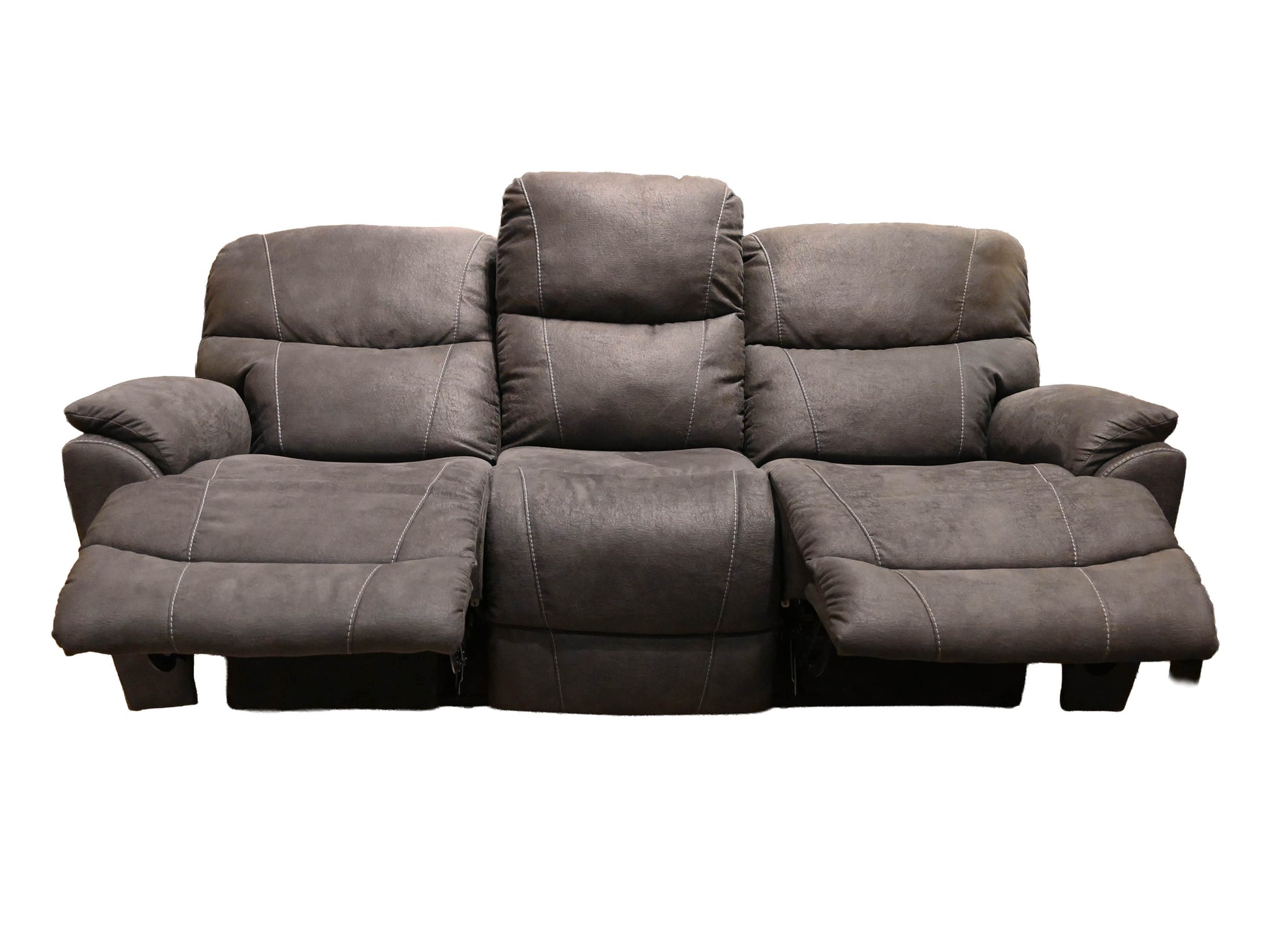The LaZBoy Trouper Reclining Sofa features independent manual dual reclining end seats for personalized comfort. Its padded wrap-over arm cushions and sculpted bucket chaise seats with footrests provide a cozy and supportive seating experience, perfect for relaxing in style.
